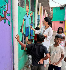 The main aim of Misaal Mumbai is not to only colour/beautify the walls. The main aim is to connect to people through Art, bring a positive change in their mindset. Educating through art about the importance of Children Education, empowering Women, creating Job opportunities for Youth, Cleanliness, Hygiene, Sanitation, Waste Management- say No to Plastic & Children health in Slums & Villages.